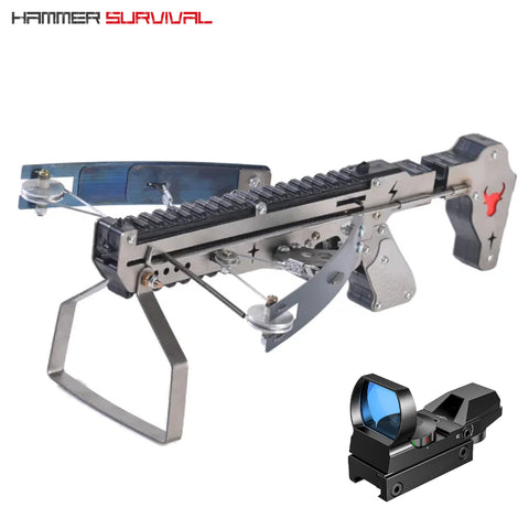- Ammo: 16.5cm crossbow bolts and 6mm steel/lead ball bearings