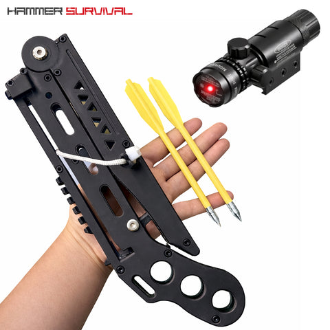 Constructed from a reinforced composite frame with metal hardware at key stress points, the CF-1 feels solid in hand while remaining lightweight and manageable. It supports both included arrows and standard 8mm ball bearings, giving you flexibility in how you shoot. The slingshot also features an internal magazine that can hold up to 10 x 8mm ball bearings at one time, allowing for continuous shooting. Two arrows are included, with additional arrows available separately. Optional packages are available that include a Precision Laser Sight rated at 5mW for enhanced targeting.